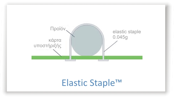 Η απλότητα της λειτουργίας της Elastic Staple™ , σε συνδυασμό με την υψηλή παραγωγικότητά της προσφέρει ασφάλεια, οικονομία και βελτίωση της τελικής μορφής του προϊόντος. Έτσι επιτρέπει στον καταναλωτή να έχει άμεση επαφή με το προϊόν που τον ενδιαφέρει, χωρίς να απαιτείται το άνοιγμα και η φθορά της συσκευασίας του. |